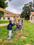 La classe des 22 GS/CP a vécu une aventure en ce début d'année avec une classe découverte au centre du Loup Garou à Lezay. Au programme de ces 4 jours, découverte du poney : vocabulaire, soin, conduite et promenade à travers la forêt, mais aussi ateliers ferme (vie, nourrissage, pansage), sensoforêt, chasse aux petites bêtes, réalisation d'objet avec de la récup, land 'art et réalisation du broyé du Poitou.